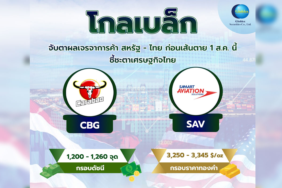 บล.โกลเบล็ก (GBS) ประเมินหุ้นไทยสัปดาห์นี้ Sideway ออกข้าง แนะจับตาผลการเจรจาทางการค้าระหว่างสหรัฐฯและไทย พร้อมชูหุ้นเด่น “CBG–SAV” รับมือสถานการณ์ความตึงเครียดไทย-กัมพูชา