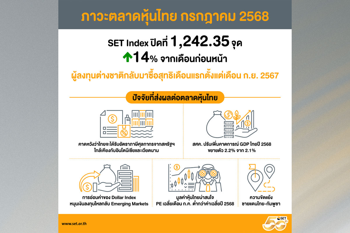 ภาวะตลาดหลักทรัพย์ไทยเดือนกรกฎาคม 2568