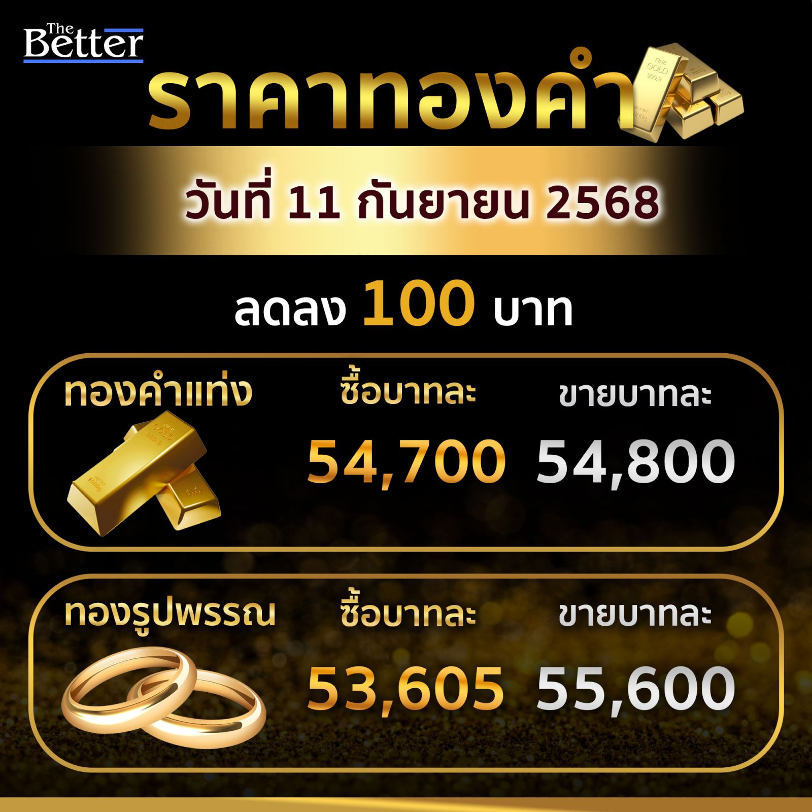 สมาคมค้าทองคำ เผย ราคาทองวันนี้ 11 ก.ย.68 เปิดตลาดลง 100 บาท ทองแท่ง 54,800 รูปพรรณ 55,600 บาท