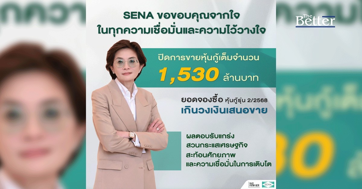 SENA ขอบคุณทุกความเชื่อมั่นปิดการขายหุ้นกู้ครบ 1,530 ล้านบาท ยอดจองซื้อเกินวงเงินเสนอชาย สะท้อนศักยภาพและความเชื่อมั่นในการเติบโต
