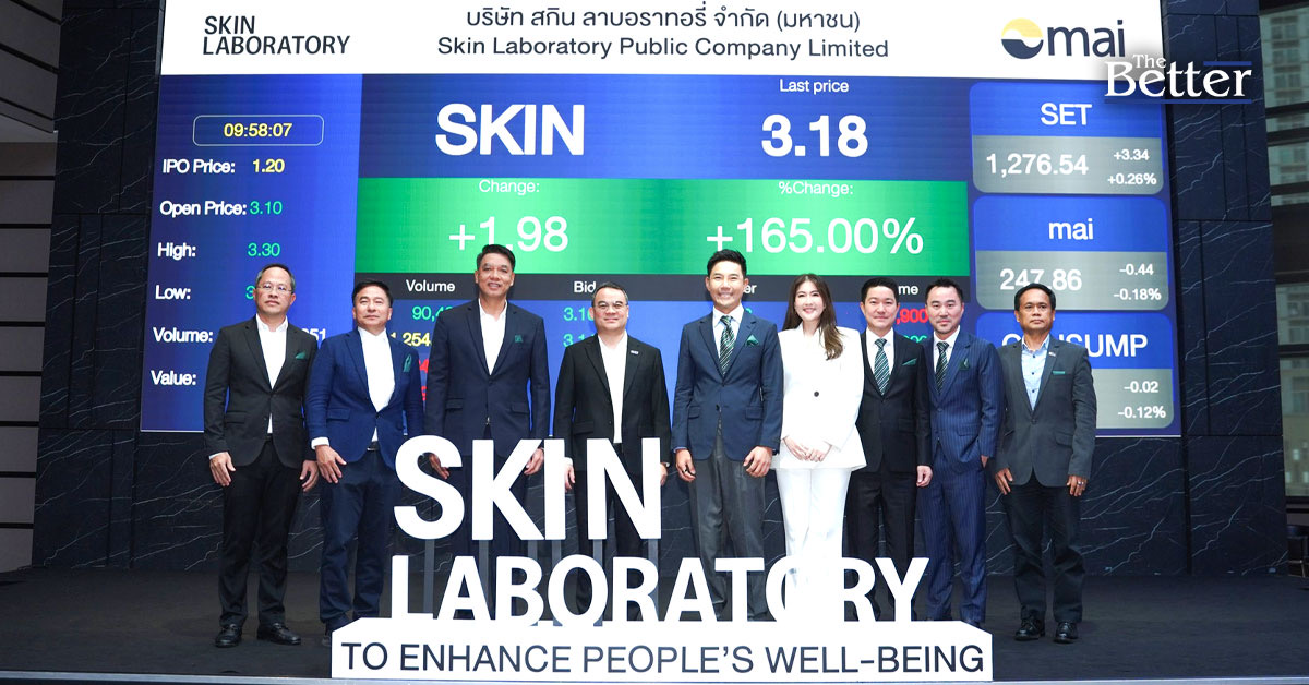 บริษัท สกิน ลาบอราทอรี่ จํากัด (มหาชน) หรือ SKIN ผู้พัฒนาและจัดจำหน่ายผลิตภัณฑ์ด้านความงามแบรนด์ไทยที่เข้าใจผู้บริโภคยุคใหม่ เข้าเทรดตลาด mai วันแรกด้วยราคาเหนือจองที่ 3.10 บาท เพิ่มขึ้น 1.90 บาท หรือ 158.33% จากราคา IPO ที่ 1.20 บาท
