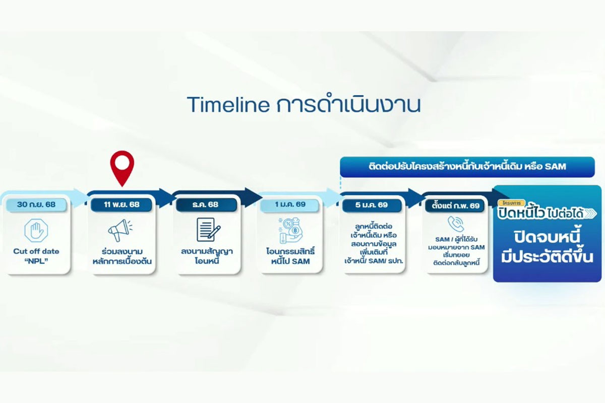 วันที่ 11 พฤศจิกายน 2568 สำนักข่าว The Better รายงานว่า ธนาคารแห่งประเทศไทย (ธปท.) ได้จัดพิธีลงนามสัญญาบันทึกความร่วมมือ (MOU) ร่วมกับหน่วยงานสถาบันการเงินไทย โดยได้รับเกียรติจาก คุณเอกนิติ นิติทัณฑ์ประภาศ รองนายกรัฐมนตรี และรัฐมนตรีว่าการกระทรวงการคลัง เข้าร่วมงานและเป็นประธานในพิธี พร้อมปาฐกถาโครงการ “ปิดหนี้ไว ไปต่อได้” หวังช่วยแก้ปัญหาหนี้เสียผ่านกลไกการซื้อหนี้รายย่อยของบริษัทบริหารสินทรัพย์ (AMC) โดยกล่าวว่า “ปัญหาหนี้ครัวเรือนฝั่งรากลึกในประเทศไทยมาอย่างยาวนาน ไม่เพียงแต่ฉุดรั้งเศรษฐกิจไทย แต่ยังฉุดรั้งชีวิตคนไทยไม่ให้ไปต่อได้ รัฐบาลจึงมีมาตรการ “Quick Big Win” ซึ่งถือเป็นโครงการเรือธงที่ช่วยกระตุ้นเศรษฐกิจในระยะสั้น-กลาง-ยาว และช่วยลดภาระหนี้ของประชาชน ต้องขอขอบคุณความร่วมมือจาก ธนาคารแห่งประเทศไทย (ธปท.) สมาคมธนาคารไทย จาก บริษัท ข้อมูลเครดิตแห่งชาติ จำกัด (NCB) บริษัท บริหารสินทรัพย์สุขุมวิท จำกัด (SAM) และสถาบันการเงินอีกหลายแห่ง ที่ช่วยขับเคลื่อนโครงการให้สำเร็จลุล่วงได้ รวมถึงโครงการ “ปิดหนี้ไว ไปต่อได้” เตรียมเสนอให้ครม.รับทราบในสัปดาห์หน้า (18 พ.ย.) โดยมุ่งหวังช่วยลูกหนี้รายย่อยไม่มีหลักประกัน เช่น สินเชื่อบัตรเครดิตและสินเชื่อส่วนบุคคล ที่มียอดหนี้รวมกับทุกสถาบันการเงินไม่เกิน 100,000 บาท คิดเป็นราว 4,700,000 บัญชี จำนวน 3,400,000 ล้านราย และมีภาระหนี้รวมกว่า 120,000 ล้านบาท โครงการนี้จะไม่ใช่โครงการระยะสั้น หัวใจสำคัญคือ เรามุ่งหวังช่วยชุบชีวิตให้กับลูกหนี้ ให้กลับมามีโอกาสทางเศรษฐกิจ ไม่ถูกปิดกั้นจากเครดิตบูโร และสามารถเดินหน้าต่อไปได้”