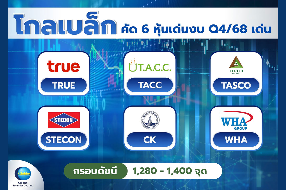 นายวัชเรนทร์ จงยรรยง ผู้อำนวยการฝ่ายวิจัย บล.โกลเบล็ก แนะนำกลยุทธ์การลงทุนกลุ่มหุ้น TRUE, TACC, TASCO, STECON, CK และ WHA จากคาดการณ์ผลประกอบการงวดไตรมาส 4/2568 จะออกมาดี