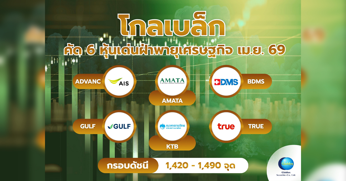 บล. โกลเบล็ก (GBS) ประเมินหุ้นไทยเดือน เม.ย. 69 ผันผวนในกรอบ 1,420-1,490 จุด พร้อมคัด 6 หุ้นเด่นฝ่าพายุเศรษฐกิจ เม.ย. 69 หลังไทยเข้าโหมดวิกฤตพลังงานดันราคาดีเซล-ค่าไฟพุ่ง