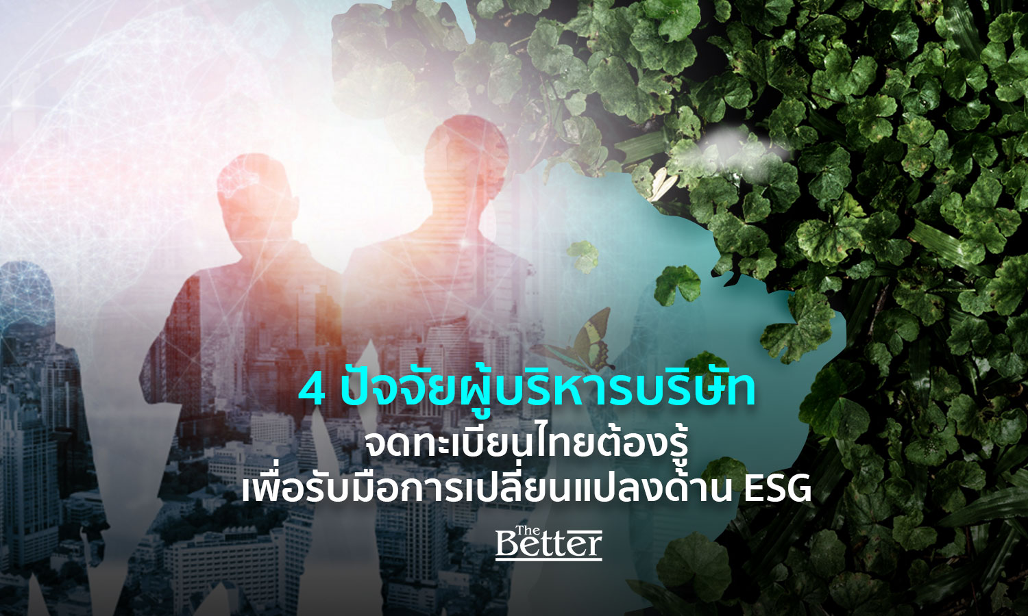 ที่สำคัญ ปัจจัยความสำเร็จในการเปลี่ยนผ่านสู่ความยั่งยืนให้ทันเวลา คือ ผู้นำองค์กรต้องเป็นผู้นำที่มององค์รวม คือ ทั้ง E, S และ G ผู้นำที่พร้อมลงมือทำสามารถนำพาองค์กรเรียนรู้เท่าทันโลก และสามารถทำงานกับทุกฝ่าย เพื่อสานพลังพลิกสถานการณ์หรือสร้างผลกระทบเชิงบวกอย่างเป็นรูปธรรม