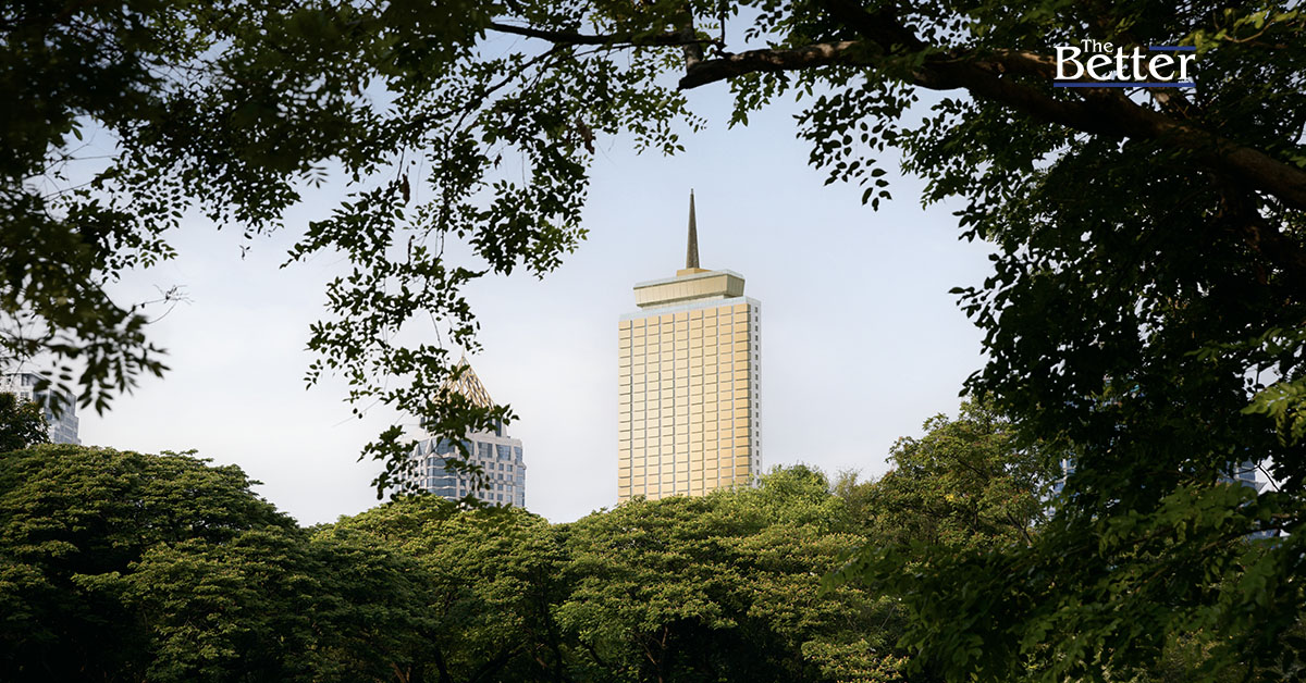 โดยนำจุดเด่นเหล่านั้นมาประยุกต์ ดัดแปลง ให้กลายเป็นชิ้นงาน ใหม่ ๆ ที่นำเสนอความเป็นไทยที่มีความร่วมสมัยเหนือกาลเวลาในหลากหลายมิติ ตั้งแต่ชั้นล่างสุดไปจนถึงยอดตึก เช่น การใช้โทนสีแบบไทย หรือ Thai Tone เพื่อส่งมอบความอบอุ่นสบายให้กับแขก หรือเน้นการใช้สีเขียว เพื่อสะท้อนจุดที่ตั้งของโรงแรมที่อยู่ตรงข้ามสวนลุมพินี ซึ่งเป็นพื้นที่สีเขียวของกรุงเทพ