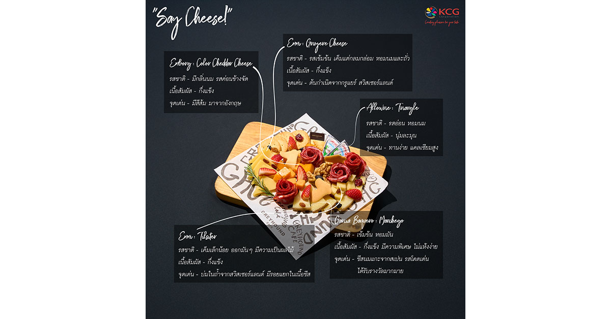 หากพูดถึงการจิบไวน์สิ่งที่มาคู่กันคงหนีไม่พ้น “ชีสบอร์ด” แต่ชีสนั้นไม่ได้มีแค่ชนิดเดียว และไม่ได้มีแค่รสชาติแบบเดียวกัน ดังนั้นความหลากหลาย และเลเวลของชีสของแต่ละบอร์ดก็สำคัญไม่แพ้กัน บริษัท เคซีจี คอร์ปอเรชั่น จำกัด (มหาชน) หรือ KCG ผู้นำด้านผลิตภัณฑ์อาหารเพื่อโมเดิร์นไลฟ์สไตล์ ซึ่งผลิต นำเข้า และจัดจำหน่ายผลิตภัณฑ์ชีสระดับพรีเมียมกว่า 40 แบรนด์ ไม่ว่าจะเป็น IMPERIAL, Allowrie, DAIRYGOLD, Ell & Vire, Emmi, Emborg ฯลฯ