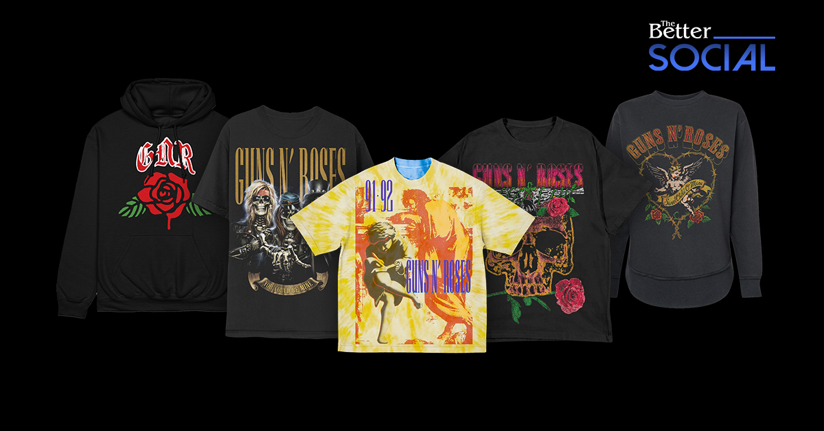 Guns N’ Roses เป็นอีกหนึ่งวงร็อกระดับตำนานที่เชื่อว่า ใครที่เป็นสาวกของวงนี้ จะต้องมีไอเทมหรือเครื่องแต่งกายประจำวงไว้สวมใส่ และทุกครั้งที่ประกาศทัวร์คอนเสิร์ต ทั้งเสื้อวงหรือสินค้าที่ถูกถ่ายทอดด้วยเอกลักษณ์ของวง จะต้องถูกยื้อแย่งกันสุดฤทธิ์ เพื่อที่จะได้มาครอบครอง