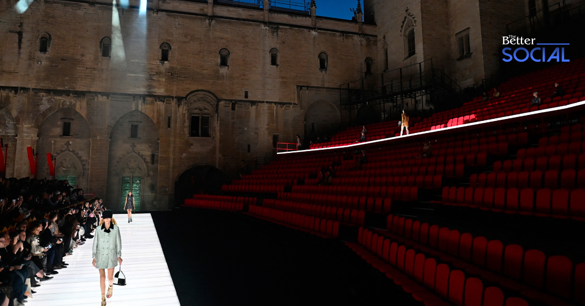 สำหรับคอลเลกชั่น Louis Vuitton Cruise 2026 ที่จัดแสดง ณ Palais des Papes ในเมืองอาวีญง ประเทศฝรั่งเศสนี้ เป็นการออกแบบที่ผสมผสานระหว่างประวัติศาสตร์ยุคกลางและแฟชั่นร่วมสมัยได้อย่างลงตัว ภายใต้การนำของ Nicolas Ghesquière ครีเอทีฟไดเรกเตอร์ของแบรนด์ โดยหยิบเอาแรงบันดาลใจจากยุคกลางจากอัศวินหญิงและตำนานอาเธอร์มาเป็นส่วนหนึ่งในการออกแบบให้ทันสมัย แต่ยังเคารพต่อประวัติศาสตร์ ที่สำคัญ Louis Vuitton ยังให้คำมั่นว่าจะสนับสนุนการอนุรักษ์และบูรณะพระราชวังหลังจบโชว์เป็นการคืนให้กับประวัติศาสตร์ที่แบรนด์นำมาเป็นส่วนหนึ่งของบทสนทนาโลกแฟชั่น
