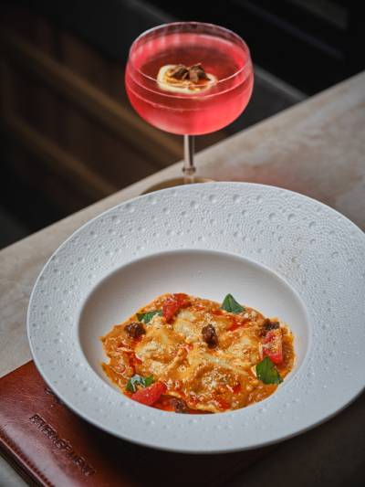 มาต่อที่ไฮไลต์คือ Ravioli แกงแกะ และ Ravioli บัตเตอร์ปานีร์ พร้อมเสิร์ฟ Dal Makhani ต้นตำรับในตำนาน ถั่วเลนทิลสีดำที่เคี่ยวด้วยเนยและครีมช้า ๆ จนได้รสเข้มข้นกลมกล่อม เสิร์ฟคู่กับเครื่องเคียงอย่าง Yakhni Pulav, Gucchi Pulav, Olive Roti, Tomato Roti และ Burani Raita ก่อนปิดท้ายด้วยขนมหวานแสนละเมียด แครอทฮัลวา และ บลูเบอร์รีเครมู ที่สื่อถึงความหวานของชีวิต