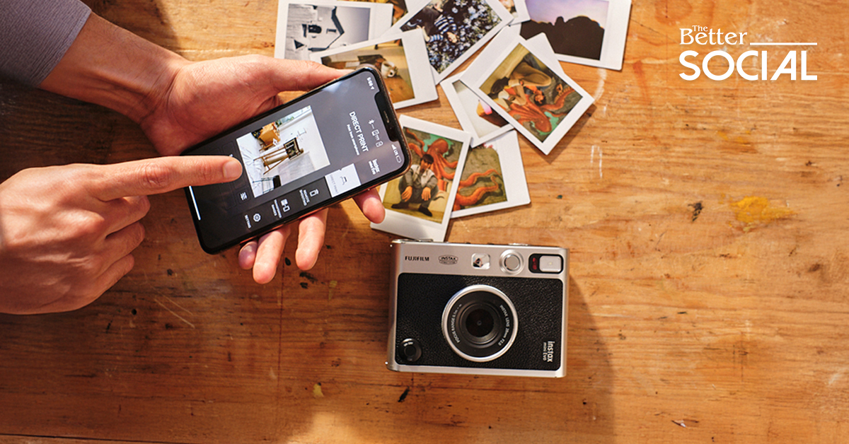 นอกจากถ่ายภาพด้วยตัวมันเองได้แล้ว Instax mini EVO ยังเชื่อมต่อกับสมาร์ทโฟนผ่านบลูทูธได้อีกด้วย ทำให้เราสามารถส่งรูปจากมือถือมาปริ้นเป็นฟิล์มอินสแตนท์ หรือแชร์ภาพจากกล้องไปลงโซเชียลได้ทันที กลายเป็นกล้องตัวเดียวที่สะดวกและตอบโจทย์คนรักการถ่ายภาพ หรือสายคอนเทนต์