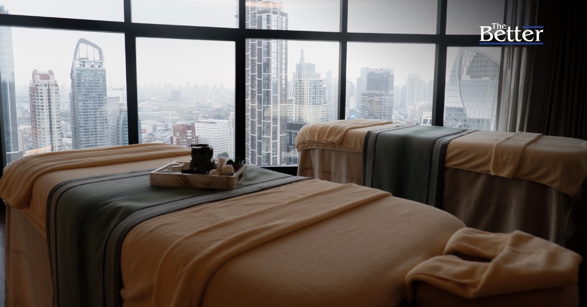 จริงอยู่ที่ว่าสปานวดผ่อนคลายจะมีทั่วไปในกรุงเทพมหานคร แต่เรากำลังพูดถึงสปาบนตึกสูง ที่มีห้องส่วนตัวและที่สำคัญทุกห้องมีวิวเมืองหลวง ที่ไม่มีคุณจะได้ห้องไหน ก็สามารถเปิดม่านนวดไป ชมเมืองไปได้ และยังมีโปรแกรมนวดทรีทเม้นท์ที่ให้ความสำคัญทั้งเรื่องกลิ่น สัมผัส เสียงที่เมื่อนวดเสร็จไม่ว่าจะเหนื่อยล้ามาจากไหนก็จะหายเป็นปลิดทิ้ง