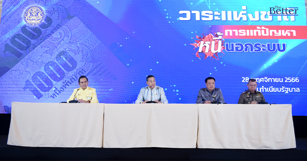 นายเศรษฐา ทวีสิน นายกรัฐมนตรี และ รมว.คลัง กล่าวว่า การแก้ไขหนี้นอกระบบจะเป็นวาระแห่งชาติ ฝ่ายปกครอง และตำรวจ จะเข้ามาแก้ไขอย่างจริงจัง มีหนี้ครัวเรือนนอกระบบ 5 หมื่นล้านบาท ในความเป็นจริงมากกว่านั้น โดยหน่วยงานรัฐบาลจะเข้ามาดูกูแก้ไขตั้งแต่ต้นน้ำจนถึงปลายน้ำ
