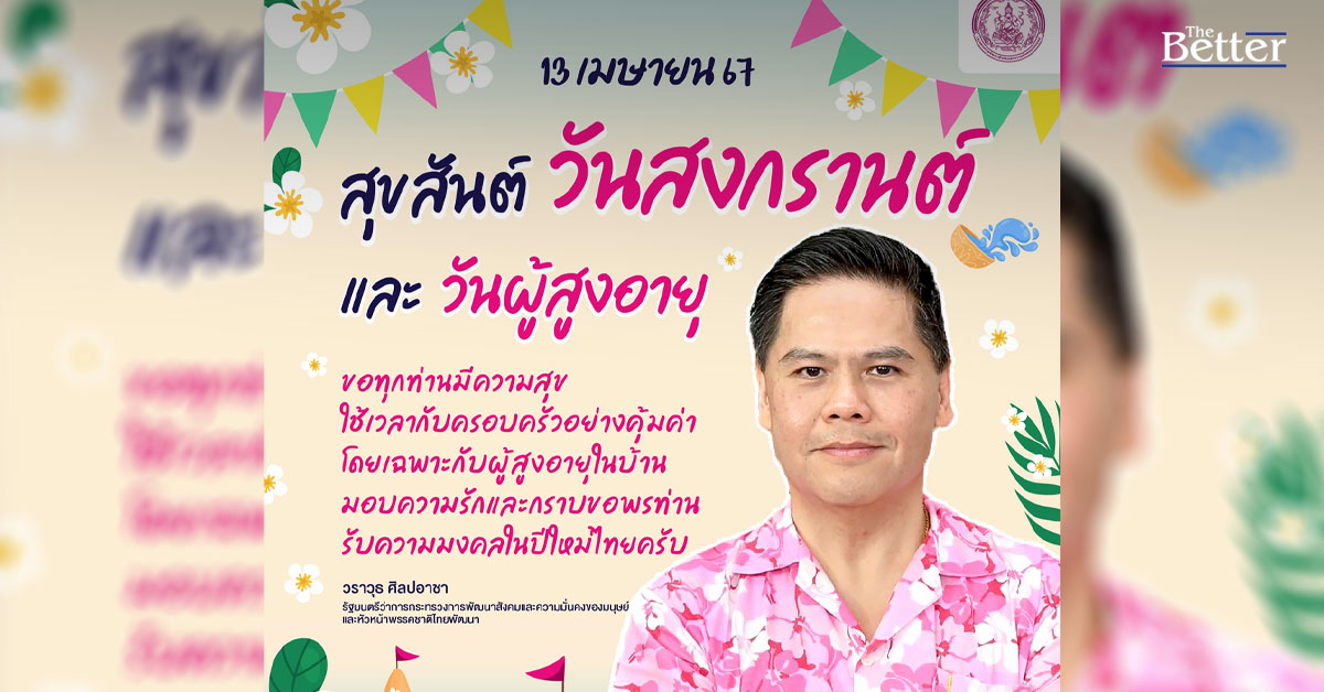 นายวราวุธ กล่าวว่า และนอกจาก 13 เมษายนเป็นวันขึ้นปีใหม่ของไทยแล้วยังเป็นวันผู้สูงอายุแห่งชาติอีกด้วย เป็นวันที่เราควรมีโอกาสได้ไปรดน้ำดำหัวขอพรจากผู้ใหญ่ แสดงความรัก แสดงความคิดถึง ตอบแทนผู้หลักผู้ใหญ่ที่มีพระคุณกับพวกเรามา การรักษาขนบธรรมเนียมเช่นนี้ เป็นการสะท้อนให้เห็นถึงวัฒนธรรมอันดีงาม เป็นการสืบสานประเพณีที่ดีงามต่อไปให้กับคนรุ่นลูกรุ่นหลาน