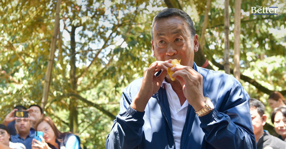 ‘เศรษฐา’ ฟินชิมทุเรียน 3 สายพันธุ์ถึงสวน บอก ‘อร่อยมาก ชอบแข็งๆ’ พร้อมมอบทุเรียนพันธุ์นวลทองจันทร์สีทอง พร้อมรับฟังปัญหา-ข้อเสนอแนะเกษตรกร สั่ง ‘คมนาคม’ ซ่อมแซมดูแลเส้นทาง สะดวกนักท่องเที่ยว