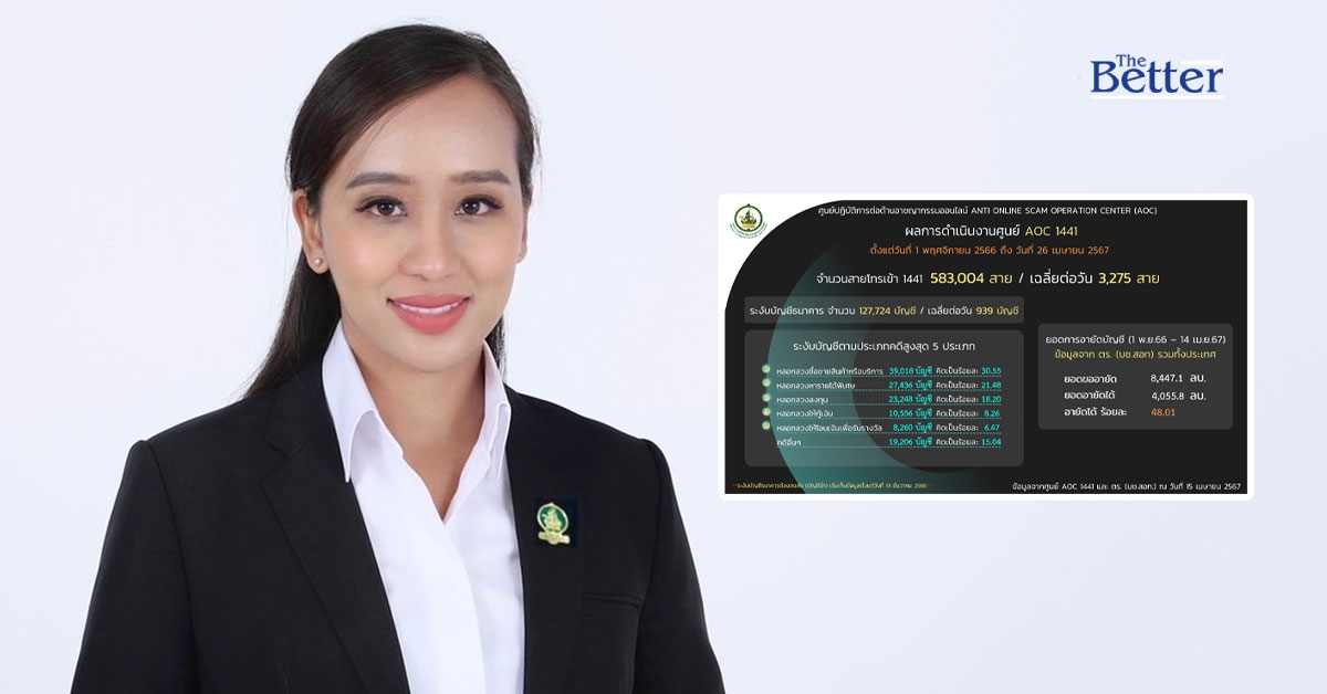 นางสาววงศ์อะเคื้อ กล่าวว่า ผลการดำเนินงานของ ศูนย์ AOC 1441 ตั้งแต่วันที่ 1 พฤศจิกายน 2566 จนถึง วันที่ 26 เมษายน 2567 มีตัวเลขสถิติผลการดำเนินงานดังนี้
