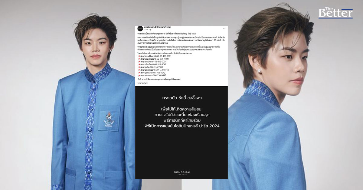ซึ่งทางคณะกรรมการโอลิมปิคฯ ก็ย้ำว่าเป็นผู้คัดเลือกผู้ออกแบบ ตัดเย็บเอง ภายใต้ชื่อแบรนด์ทรงสมัย และ คุณธนา ไชยประสิทธิ์ หัวหน้าคณะนักกีฬาทีมชาติไทย “โอลิมปิกเกมส์ ปารีส2024” ตัดสินใจให้นักกีฬาไทยใส่ชุดที่ออกแบบโดยทีมงานศิลปแกรนด์สปอร์ตร่วมกับอีก 4 คณะทีมงานลายมรดกโลกบ้านเชียงของจังหวัดอุดรธานีในวันพิธีเปิดโอลิมปิกเกมส์ ณ กรุงปารีสวันที่ 26 กค. 2024