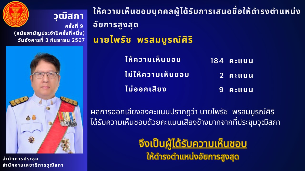 ที่ประชุมวุฒิสภา ลงมติด้วยคะแนนท่วมท้น เห็นชอบตั้งให้ "ไพรัช พรสมบูรณ์ศิริ" เป็นอัยการสูงสุดคนใหม่