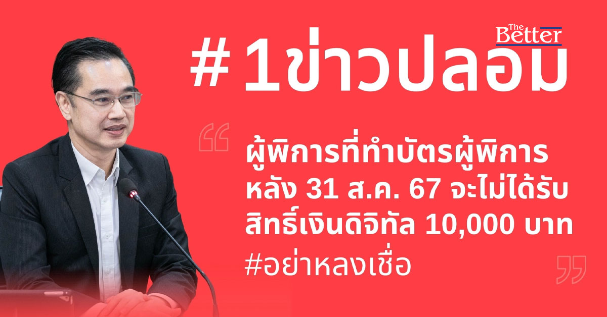 ดีอี เตือน อย่าเชื่อ-แชร์ ข่าวปลอม “ผู้พิการที่ทำบัตรผู้พิการหลัง 31 ส.ค. 67 จะไม่ได้รับสิทธิ์เงินดิจิทัล 10,000 บาท” หวั่นกระทบสังคม