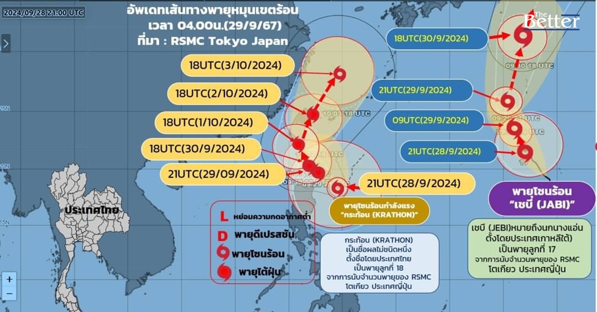 กรมอุตุนิยมวิทยา อัปเดตสถานการณ์พายุหมุนเขตร้อน เมื่อเวลา 04.00น. วันนี้ (29/9/67) บริเวณมหาสมุทรแปซิฟิกตะวันตก มีพายุอยู่ 2 ลูก