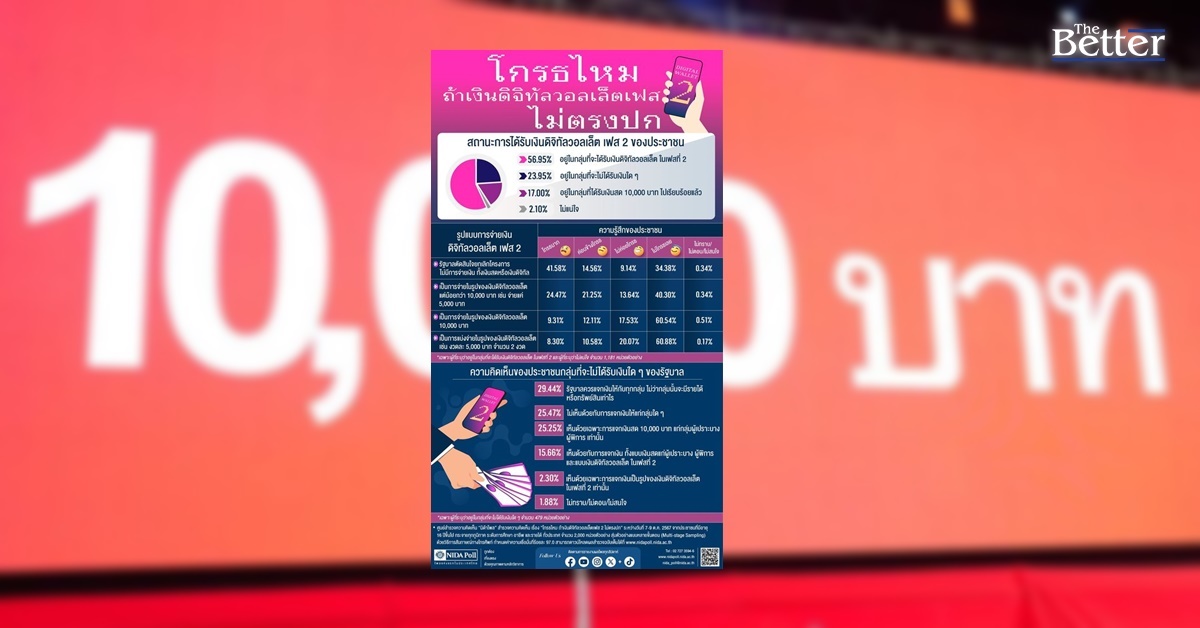 นิด้าโพล เผย ผลสำรวจ “โกรธไหมถ้าเงินดิจิทัลวอลเล็ต เฟส 2 ไม่ตรงปก” พบส่วนใหญ่ โกรธมาก หากยกเลิกโครงการ