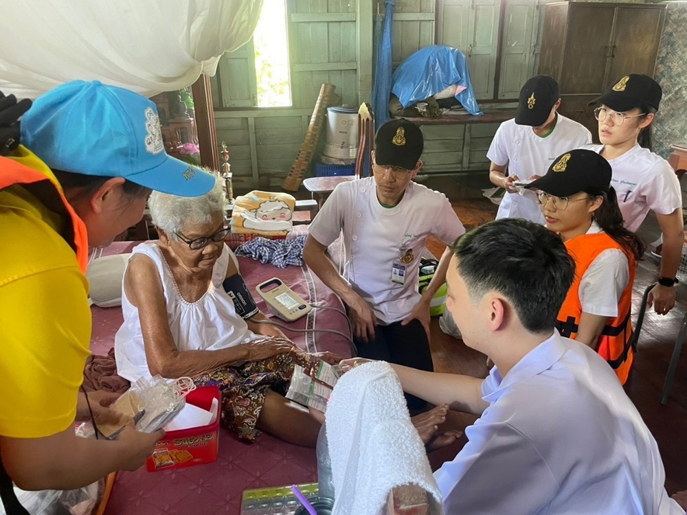 โดยที่บุุคลากรทางการแพทยของกองทัพบก ซึ่งประกอบด้วย แพทย์ พยาบาล และ นักเรียนแพทย์ นักเรียนพยาบาล ได้ลุยน้ำเข้าไปช่วยเหลือดูแลประชาชนถึงบ้านเรือน ซึ่งได้ทำการตรวจโรค ดูแลสุขภาพกายและใจผู้ประสบอุทกภัย พร้อมแจกจ่ายยาและเวชภัณฑ์ต่างๆ ที่พระบาทสมเด็จพระเจ้าอยู่หัวฯ พระราชทานให้กรมแพทย์ทหารบก เพื่อใช้้แจกจ่ายดูแลพสกนิกรของพระองค์ ตลอดจนได้สอบถามปัญหาความเดือดร้อนจากประชาชนที่ไม่สะดวกในการสัญจรออกจากบ้านเรือนได้ โดยเฉพาะผู้สูงอายุและเด็กเล็ก เพื่อดูแลให้ความช่วยเหลือในเบื้องต้น พร้อมเก็บข้อมูลเพื่อให้ความช่วยเหลือในการลงพื้นที่อื่น