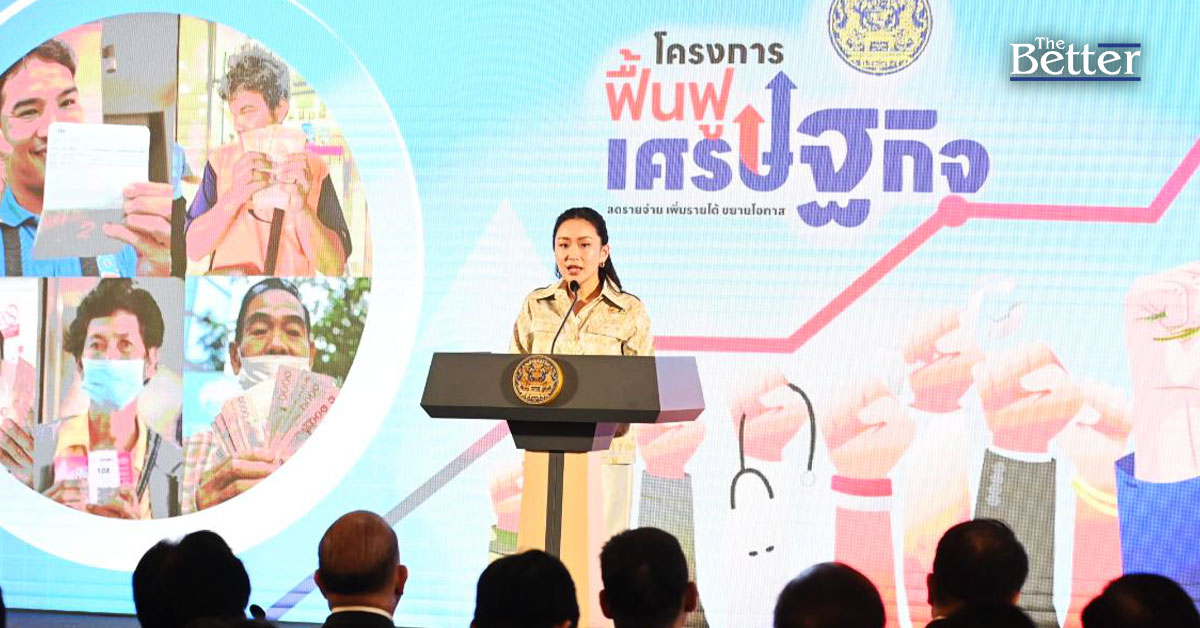 น.ส. แพทองธาร ชินวัตร นายกรัฐมนตรี เป็นประธานในพิธีเปิด “โครงการฟื้นฟูเศรษฐกิจ ลดรายจ่าย เพิ่มรายได้ ขยายโอกาส” บูรณาการหน่วยงานภาครัฐ และภาคเอกชนรายใหญ่ กว่า 130 ราย ช่วยลดรายจ่ายให้ผู้ประกอบการรายเล็ก และลดราคาสินค้าอุปโภคบริโภคให้แก่ประชาชน ต่อเนื่องตลอด 5 เดือนเต็ม รัฐบาลมุ่งมั่นที่จะบรรเทาความเดือดร้อนของพี่น้องประชาชน ผ่านมาตรการกระตุ้นเศรษฐกิจต่างๆ โดยเฉพาะโครงการ “เงินหมื่น ฟื้นเศรษฐกิจ” ที่ได้เติมเงินหมุนเวียนในระบบเศรษฐกิจไปแล้วกว่า 145,000 ล้านบาท ซึ่งเป็นการสร้างพายุหมุนเศรษฐกิจลูกใหญ่ เป็นการต่อลมหายใจและเพิ่มกำลังซื้อให้กับพี่น้องประชาชน รายเล็กที่กำลังเดือดร้อน ทำให้หลายคนได้ตั้งตัวใหม่จากโครงการนี้