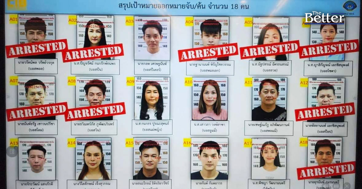 ทั้งนี้ มีรายงานว่า ผู้ถูกออกหมายจับ 18คน ประกอบด้วย นายวรัตน์พล (บอสพอล) นายกันต์ (บอสกันต์)น.ส.พีชญา (โค้ชมิน)นายยุรนันท์ (บอสแซม) น.ส.ปัญจรัศม์ (บอสปัน) นายกลด (บอสปีเตอร์ ) นายฐานานนท์ (บอสหมอเอก) น.ส.นัฐปสรณ์ (บอสสวย)