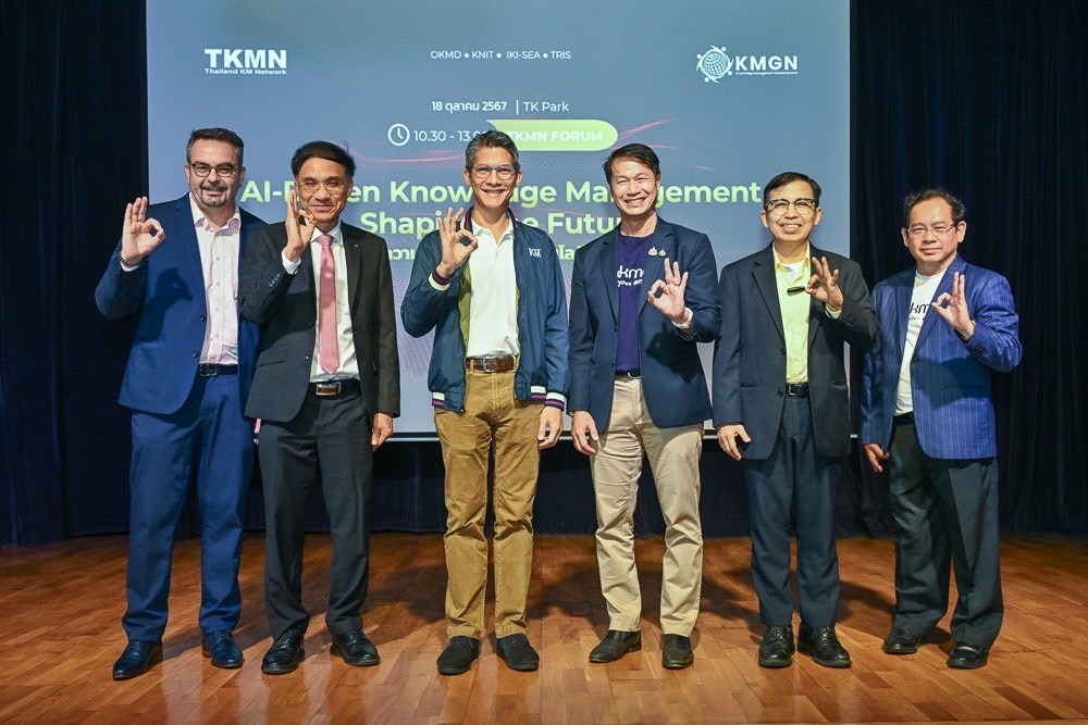 เครือข่ายการจัดการความรู้ประเทศไทย (Thailand Knowledge Management Network – TKMN) โดยสำนักงานบริหารและพัฒนาองค์ความรู้ (องค์การมหาชน) หรือ OKMD สถาบันเพื่อการจัดการความรู้และนวัตกรรมแห่งเอเชียตะวันออกเฉียงใต้ (IKI-SEA), ทริส คอร์ปอเรชั่น (TRIS) และสถาบันคลังสมองของชาติ (KNIT) แถลงข่าวเตรียมจัดงานสัมมนา “การจัดการความรู้ยุคใหม่ด้วยเทคโนโลยีปัญญาประดิษฐ์: ก้าวสู่อนาคต” (AI-Driven Knowledge Management: Shaping the Future) โดยผู้เชี่ยวชาญจากองค์กรจัดการความรู้ชั้นนำของประเทศ ที่ TK Park