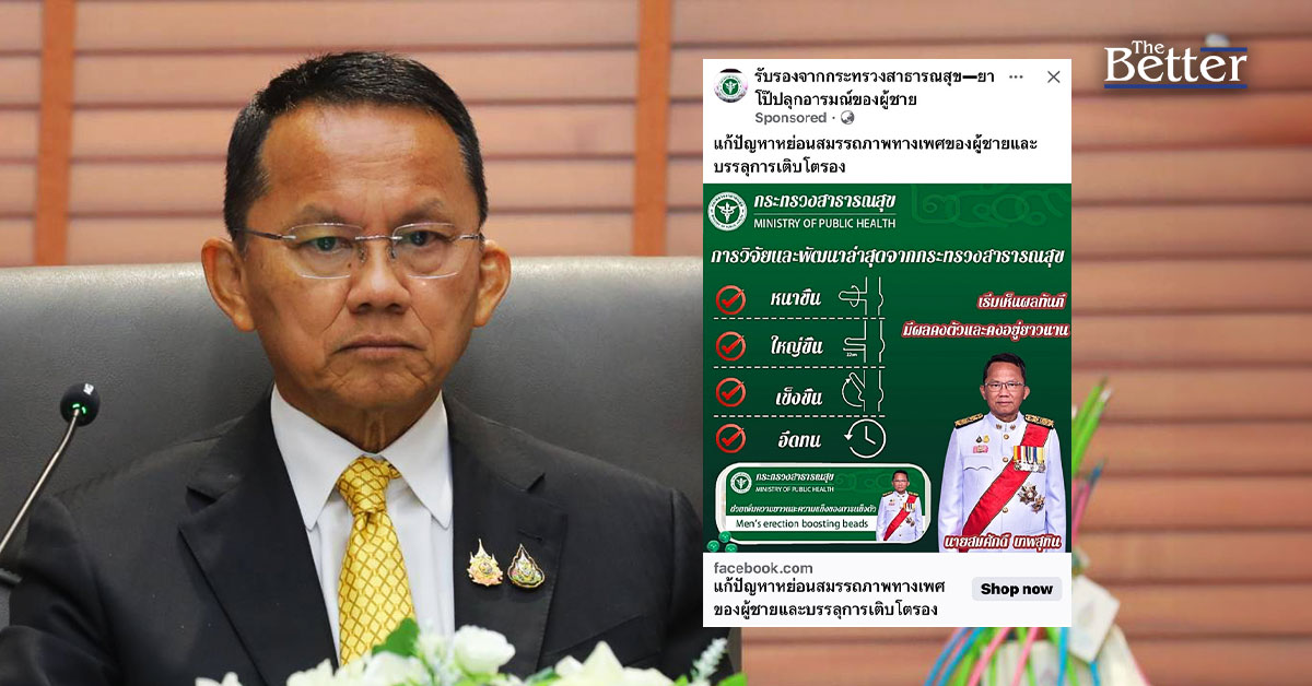 น.ส.ตรีชฎา ศรีธาดา โฆษกกระทรวงสาธารณสุข ฝ่ายการเมือง เผย นายสมศักดิ์ เทพสุทิน รัฐมนตรีว่าการกระทรวงสาธารณสุขได้ถูกมิจฉาชีพมีพฤติการณ์ไม่เกรงกลัวกฎหมาย บังอาจทำเพจ เฟซบุคปลอมระบุ “รับรองจากกระทรวงสาธารณสุข - ยาโป๊ปลุกอารมณ์ของผู้ชาย แก้ปัญหาหย่อนสมรรถภาพทางเพศษของผู้ชาย…” ลงภาพตราสัญลักษณ์พร้อมชื่อกระทรวงสาธารณสุข ที่สำคัญ ได้ลงภาพครึ่งตัวและชื่อ นายสมศักดิ์ เทพสุทิน รัฐมนตรีว่าการกระทรวงสาธารณสุข และข้อความโฆษณาชวนเชื่อเกี่ยวกับสมรรถภาพทางของชาย เช่น ทำให้อึดทน ใหญ่ขึ้น แข็งขึ้น ฯลฯ ซึ่งสร้างความเสียหายอย่างร้ายแรงต่อชื่อเสียงของนายสมศักดิ์และกระทรวงสาธารณสุข อีกทั้งทำให้ผู้ที่เห็นสื่อตกเป็นเหยื่อถูกหลอกลวงให้เข้าใจผิด สั่งซื้อยามากินโดยไม่ปรึกษาแพทย์ อาจทำให้ได้รับอันตรายถึงขั้นเสียชีวิตได้