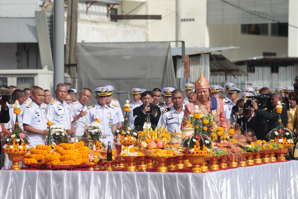 โดยในช่วงเช้ากองทัพเรือได้จัดให้มีพิธีบวงสรวงพระภูมิเจ้าที่ในพื้นที่ต่างๆ โดยในส่วนของพิธีเซ่นไหว้แม่ย่านางเรือพระราชพิธี ได้จัดขึ้นในพื้นที่อู่ทหารเรือธนบุรี กรมอู่ทหารเรือ ซึ่งเป็นพื้นที่จอดเรือพระที่นั่ง และเรือรูปสัตว์