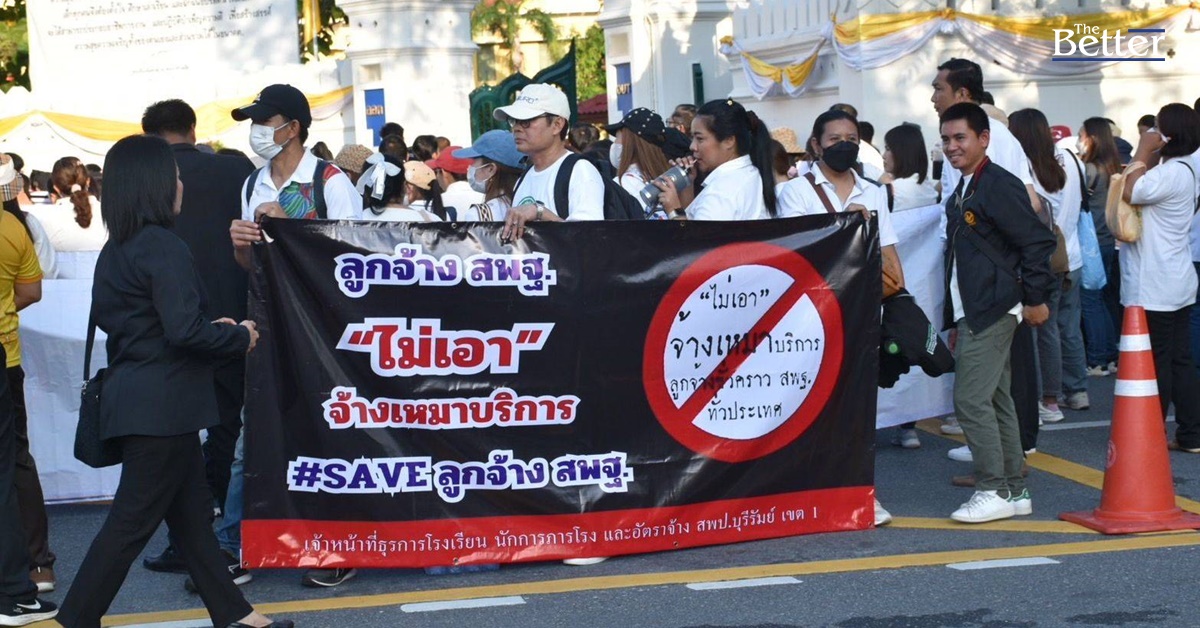 ม็อบลูกจ้างศธ. บุกกระทรวง ขอพบรัฐมนตรี เรียกร้องทวงคืนประกันสังคม เพิ่มเงินเดือน ความมั่นคงในอาชีพ