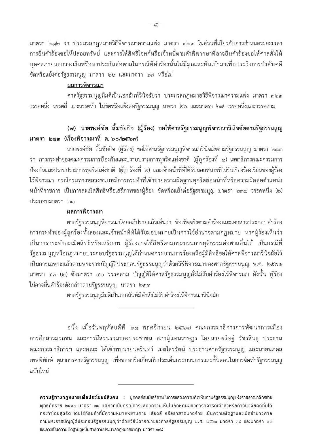 ล่าสุดเมื่อเวลา 11.30 น. วันที่ 22 พ.ย. 67 มีข่าวรายงานว่า ศาลรัฐธรรมนูญมีมติไม่รับคำร้องดังกล่าวไว้พิจารณาวินิจฉัย เนื่องจากเหตุไม่มูล 6 ประเด็น ดังนี้