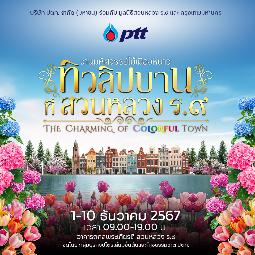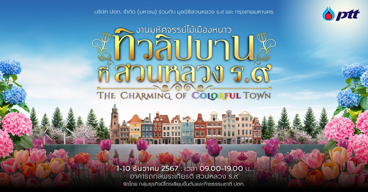 บริษัท ปตท. จำกัด (มหาชน) ขอเชิญชวนทุกท่านร่วมสัมผัสประสบการณ์อันน่าตื่นตาตื่นใจในงาน “มหัศจรรย์ไม้เมืองหนาว ทิวลิปบานที่สวนหลวง ร.๙” ประจำปี 2567 ซึ่งเป็นส่วนหนึ่งในงาน “พรรณไม้งาม อร่ามสวนหลวง ร.๙ ระหว่างวันที่ 1-10 ธันวาคม 2567 ณ อาคารถกลพระเกียรติ สวนหลวง ร.๙ ภายใต้แนวคิด “The Charming of Colorful Town” ที่จำลองบรรยากาศเมืองแห่งสีสันในยุโรปมาสร้างความประทับใจให้กับผู้เข้าชมได้เพลิดเพลินไปกับความงดงามของดอกไม้เมืองหนาวหลากชนิด ไม่ว่าจะเป็นทิวลิปหลากสี หลายสายพันธุ์ ไฮเดรนเยีย และไม้เมืองหนาวนานาพรรณ พร้อมทั้งสัมผัสความสดใหม่ของ สตรอว์เบอร์รีเกรดพรีเมียม ที่ปลูกด้วยนวัตกรรมพลังงานความเย็นจากกระบวนการแปรสภาพก๊าซธรรมชาติเหลว (LNG) นวัตกรรมที่สะท้อนถึงความยั่งยืนด้านสิ่งแวดล้อมและการใช้พลังงานอย่างมีประสิทธิภาพ