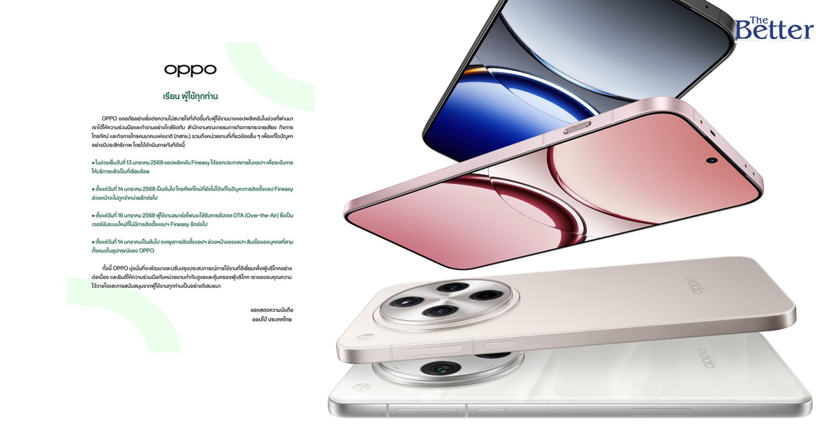 OPPO ออกแถลงการณ์ขออภัย อีกครั้ง พร้อมแจงไทม์ไลน์แก้ปัญหาแอปฯ เงินกู้ พร้อมให้ความร่วมมือกับหน่วยงานกำกับดูแลและคุ้มครองผู้บริโภค ล่าสุด แอปฯ Fineasy ประกาศหยุดให้บริการแล้ว
