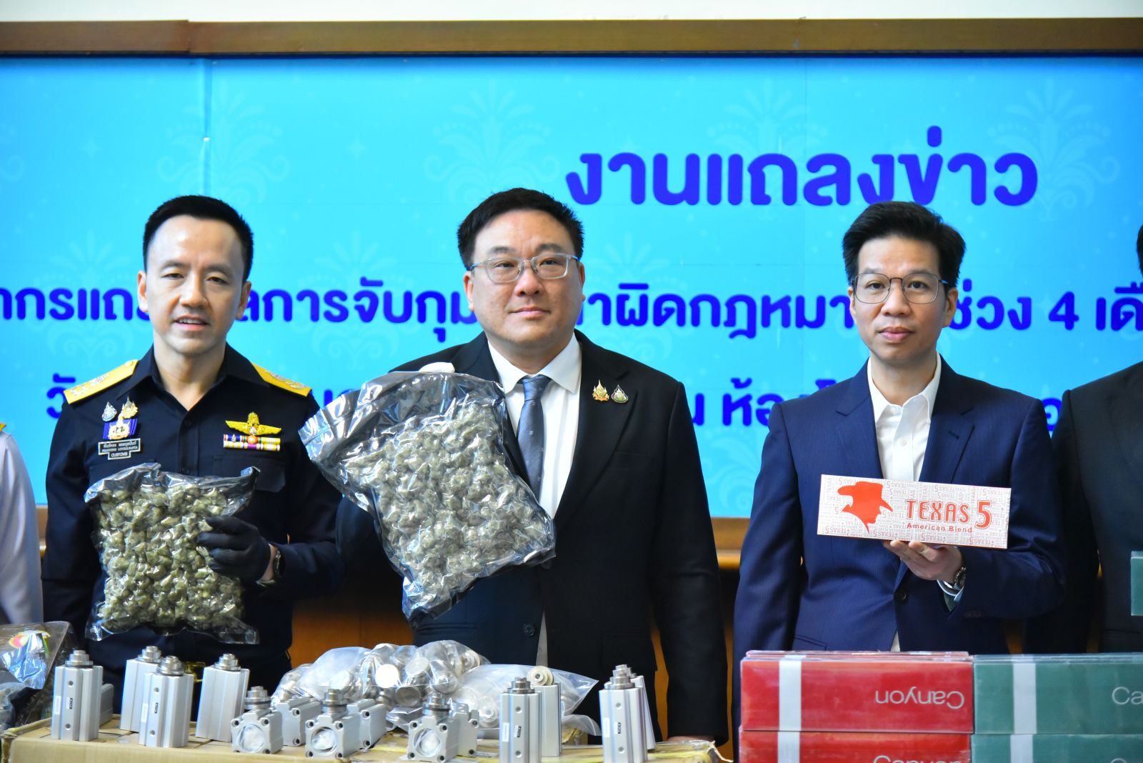 นายจุลพันธ์ เปิดเผยว่า การจับกุมสินค้าผิดกฎหมายน่าสนใจ ประกอบด้วยบุหรี่ต่างประเทศ จับกุมได้ 667 คดี ปริมาณ 17.39 ล้านมวน มูลค่า 90.32 ล้านบาท, บุหรี่ไฟฟ้าจับกุมได้ 234 คดี มูลค่า 28.95 ล้านบาท, ยาเสพติดจับกุมได้ 85 คดี มูลค่า 637.10 ล้านบาท และช่อดอกกัญชา 361 คดี มูลค่า 24.75 ล้านบาท