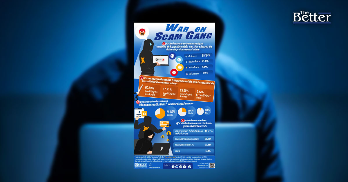 ศูนย์สำรวจความคิดเห็น “นิด้าโพล” สถาบันบัณฑิตพัฒนบริหารศาสตร์ (นิด้า) เปิดเผยผลการสำรวจของประชาชน เรื่อง “War on Scam Gang” ทำการสำรวจระหว่างวันที่ 10-11 กุมภาพันธ์ 2568 จากประชาชนที่มีอายุ 18 ปีขึ้นไป กระจายทุกภูมิภาค ระดับการศึกษา อาชีพ และรายได้ ทั่วประเทศ รวมจำนวนทั้งสิ้น 1,310 หน่วยตัวอย่าง เกี่ยวกับมาตรการของรัฐบาลในการจัดการกับปัญหาแก๊งคอลเซนเตอร์ที่มีฐานในเมียนมา การสำรวจอาศัยการสุ่มตัวอย่างโดยใช้ความน่าจะเป็นจากบัญชีรายชื่อฐานข้อมูลตัวอย่างหลัก (Master Sample) ของ “นิด้าโพล” สุ่มตัวอย่างแบบหลายขั้นตอน (Multi-stage Sampling) เก็บข้อมูลด้วยวิธีการสัมภาษณ์ทางโทรศัพท์ โดยกำหนดค่าความเชื่อมั่น ร้อยละ 97.0