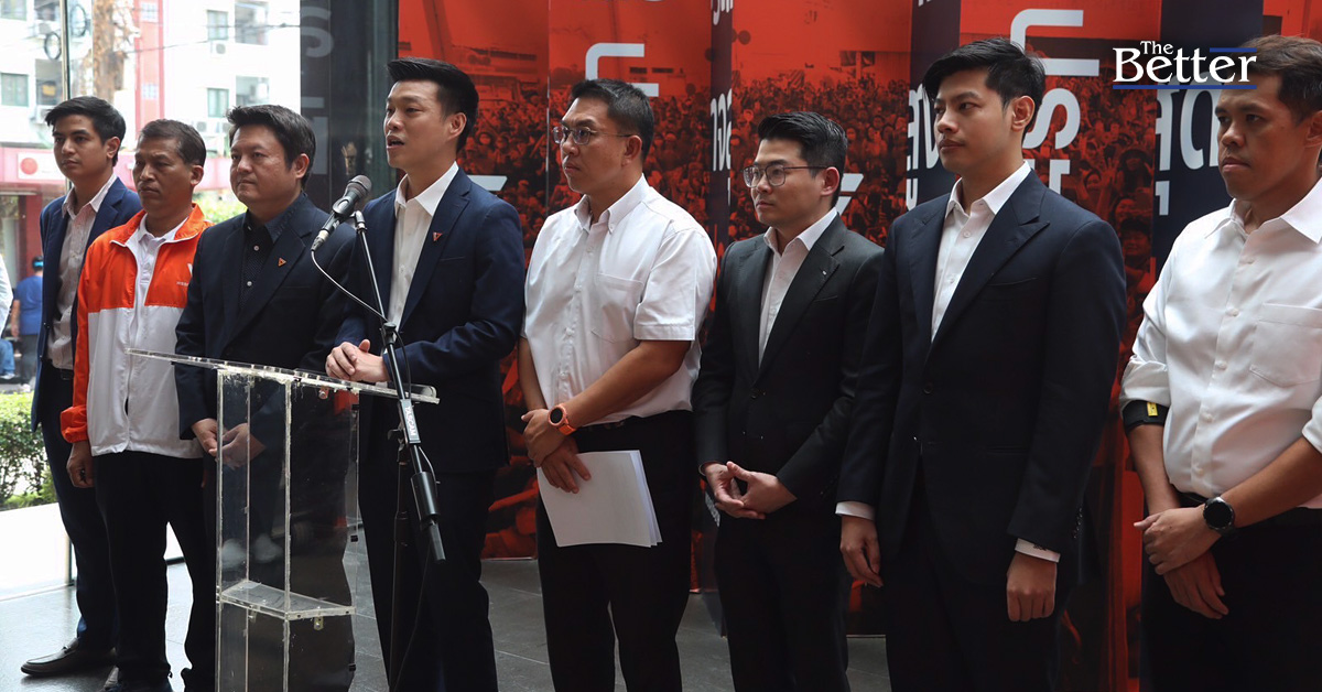 ณัฐพงษ์ เรืองปัญญาวุฒิ หัวหน้าพรรคประชาชน พร้อมด้วยวิโรจน์ ลักขณาอดิศร รองหัวหน้าพรรคประชาชน ฝ่ายกิจการพิเศษ ร่วมแถลงข่าวแนะนำคณะทำงานติดตามประเด็น และประมวลข้อเสนอต่อเหตุการณ์แผ่นดินไหวและตึกถล่มต่อรัฐบาล