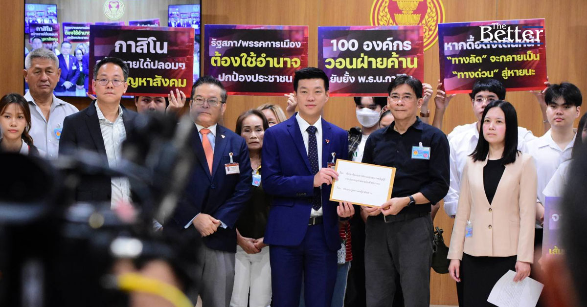 ขณะเดียวกัน วันนี้ (2 เม.ย.) นายธนากร คมกฤส เลขาธิการมูลนิธิรณรงค์หยุดพนัน ในฐานะตัวแทน 100 องค์กรภาคประชาสังคม ยื่นหนังสือถึงนายวันมูหะมัดนอร์ มะทา ประธานสภาผู้แทนราษฎร ในฐานะประธานรัฐสภา และนายณัฐพงษ์ เรืองปัญญาวุฒิ หัวหน้าพรรคประชาชน ในฐานะผู้นำฝ่ายค้านในสภาผู้แทนราษฎร เพื่อเรียกร้องต่อการพิจารณาร่างพระราชบัญญัติการประกอบธุรกิจสถานบันเทิงครบวงจร หรือ เอ็นเตอร์เทนเม้นท์คอมเพล็กซ์ ที่ประธานสภาผู้แทนราษฎร ได้มีการบรรจุเข้าสู่ระบบวาระการประชุมสภาผู้แทนราษฎรในวันที่ 3 เม.ย.นี้แล้วว่า จากการที่รัฐบาล พยายามผลักดันร่างกฎหมายดังกล่าวด้วยอาการรีบร้อน เร่งรัดมากจนผิดสังเกต และตัดสินใจเดินหน้า กระทำสิ่งที่ฝืนกระแสคัดค้านของสังคม และอาจเป็นชนวนความขัดแย้งครั้งใหม่ ซึ่งเครือข่ายภาคประชาสังคม 100 องค์กรมีความเห็นว่า การกระทำของรัฐบาลในครั้งนี้เป็นการกระทำที่อสัตย์ อ้างส่งเสริมการท่องเที่ยว ด้วยการส่งเสริมสนับสนุนแหล่งท่องเที่ยวที่มนุษย์สร้างขึ้น และบังคับให้ต้องมีกาสิโน และร่างกฎหมาย ก็มีการเขียนข้อกำหนดไว้อย่างหละหลวม และการผลักดันนโยบายสถานบันเทิงครบวงจรของรัฐบาลในครั้งนี้ เป็นการกระทำที่ไร้ความรับผิดชอบ เนื่องจากไม่ได้มีการหาเสียงไว้กับประชาชน และยังไม่ได้มีการศึกษาอย่างรอบด้านเพียงพอ รวมถึงนโยบายการเปิดสถานบันเทิงครบวงจร ที่มีคาสิโนเป็นภาคบังคับนั้น ก็เป็นความเห็นแก่ได้ของรัฐบาล ที่คำนึงแต่เรื่องรายได้ทางเศรษฐกิจอย่างอับจนปัญญาที่จะหาวิธีอื่นที่สร้างสรรค์ ไม่ได้คำนึงถึงผลเสียที่มากพอ และนำอนาคตของสังคมไทยไปเสี่ยง ไร้มาตรการในการปกป้องสังคมที่วางใจได้ ดังนั้น เครือข่ายภาคประชาสังคม 100 องค์กร จึงขอเรียกร้องต่อรัฐสภา และพรรคการเมืองทุกพรรค ให้ปฏิเสธการรับร่างพระราชบัญญัตินี้เข้าสู่การพิจารณา และเรียกร้องให้พรรคฝ่ายค้าน ดำเนินการยับยั้งกฎหมายที่ไม่เป็นคุณต่อสังคม และยังเปิดเผยด้วยว่า ขณะนี้ ภาคประชาชน กำลังอยู่ระหว่างการรวบรวมรายชื่อ เพื่อให้รัฐบาลจัดการออกเสียงประชามติในประเด็นนี้ หรือขอให้ฝ่ายค้าน ได้เสนอต่อ สภาผู้แทนราษฎรให้รัฐบาลจัดการออกเสียงประชามติในเรื่องนี้โดยช่วยเหลือภาคประชาชนท่านหนึ่ง