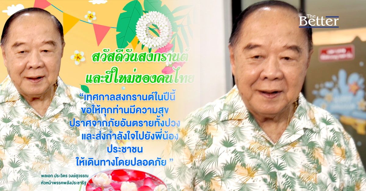 หัวหน้าพรรคพลังประชารัฐ ส่งกำลังใจเนื่องในเทศกาลสงกรานต์ ขอให้คนไทยทุกคนมีความสุข ปลอดภัย เดินทางกลับบ้านอย่างสวัสดิภาพ พร้อมอาราธนาสิ่งศักดิ์สิทธิ์คุ้มครองให้สมหวังและอายุยืนยาว