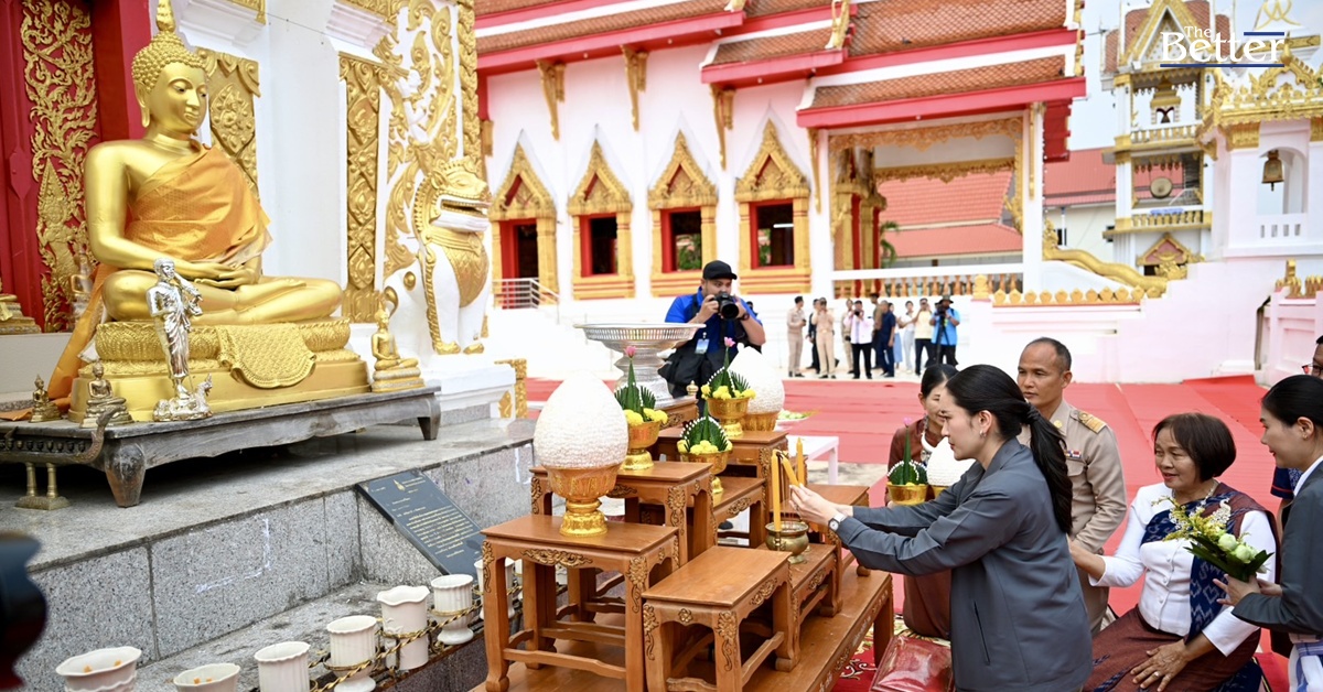 เมื่อมาถึงน.ส.แพทองธาร สักการะพระธาตุประสิทธิ์ พระธาตุประจำคนวันพฤหัสบดี ซึ่งเป็นวันเกิดของนายกฯและเข้ากราบนมัสการพระมหาสมัคร วรปุณฺโณ รักษาการเจ้าอาวาสวัดธาตุประสิทธิ์ รองเจ้าคณะจังหวัดนครพนม พร้อมถวายธูปเทียน ผ้าไตรจีวร โดยเจ้าอาวาส สนทนากับนายกฯว่า เข้ามาหน้าบันพระอุโบสถเป็นตราภปร. ที่ในหลวงร.9สร้างพระอุโบสถหลังนี้ โดยในหลวงทรงโปรดข้อความว่า “คนชาติไทย จะรักษาความเปนไทยอยู่ได้ด้วยมีสติ สำนึก อยู่ในความสามัคคี” และเมื่อปี 2565 สมเด็จพระเจ้าลูกเธอ เจ้าฟ้าสิริวัณณวรี นารีรัตนราชกัญญา ได้เสด็จมาที่วัดแห่งนี้ และทรงโปรดอนุรักษ์และรักษาความเป็นไทย ซึ่งน.ส.แพทองธาร ระบุว่า พระองค์ทรงทำเรื่องผ้า ช่วยชาวบ้านได้เยอะ