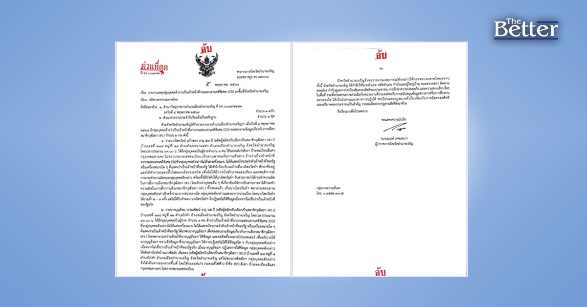 นายณรงค์ เทพเสนา ผู้ว่าราชการจังหวัดอำนาจเจริญ ทำหนังสือลับ ด่วนที่สุดที่ อจ 0018.2/3ถึงปลัดกระทรวงมหาดไทย เรื่องรายงานเหตุกลุ่มบุคคลอ้างว่าเป็นเจ้าหน้าที่กรมสอบสวนคดีพิเศษ (DSI) ลงพื้นที่จังหวัดอำนาจเจริญ