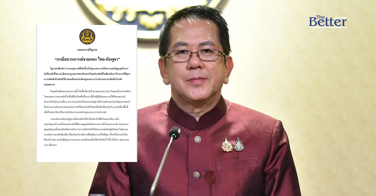 รัฐบาล ออกแถลงการณ์ ปมชายแดนไทย-กัมพูชา ขอประชาชนมั่นใจ รัฐเร่งแก้ปัญหา ปกป้องอธิปไตย-ดินแดนไทยอย่างเต็มที่ ยึดหลักสันติวิธี-กฎหมายระหว่างประเทศ สองฝ่ายพร้อมร่วมมือไม่ให้สถานการณ์ลุกลามบานปลาย