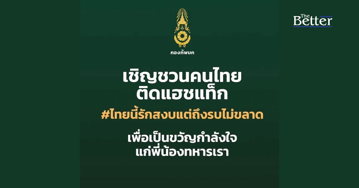 กองทัพบก ชวนติดแฮชแท็ก "ไทยนี้รักสงบแต่ถึงรบไม่ขลาด" ให้กำลังใจทหารไทย