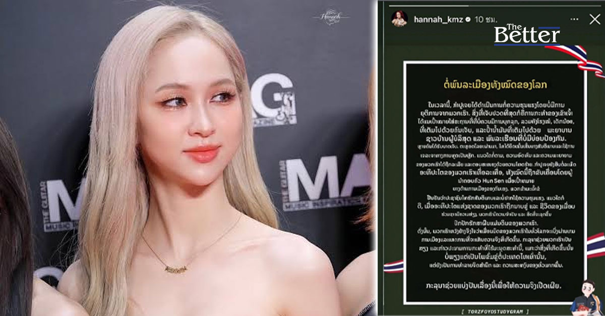 “แฮนน่า 4eve” แชร์คำชี้แจงภาษาลาว ให้ข้อเท็จจริงทหารเขมรโจมตีประเทศไทยก่อน ช่วยเป็นกระบอกเสียง บอกประชาคมโลก