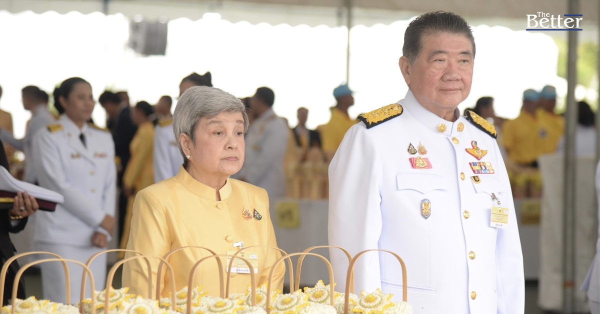 รักษาราชการแทนนายกรัฐมนตรี และภริยา นำผู้ร่วมพิธีร่วมตักบาตรพระสงฆ์ จำนวน 174 รูป เป็นอันเสร็จพิธี