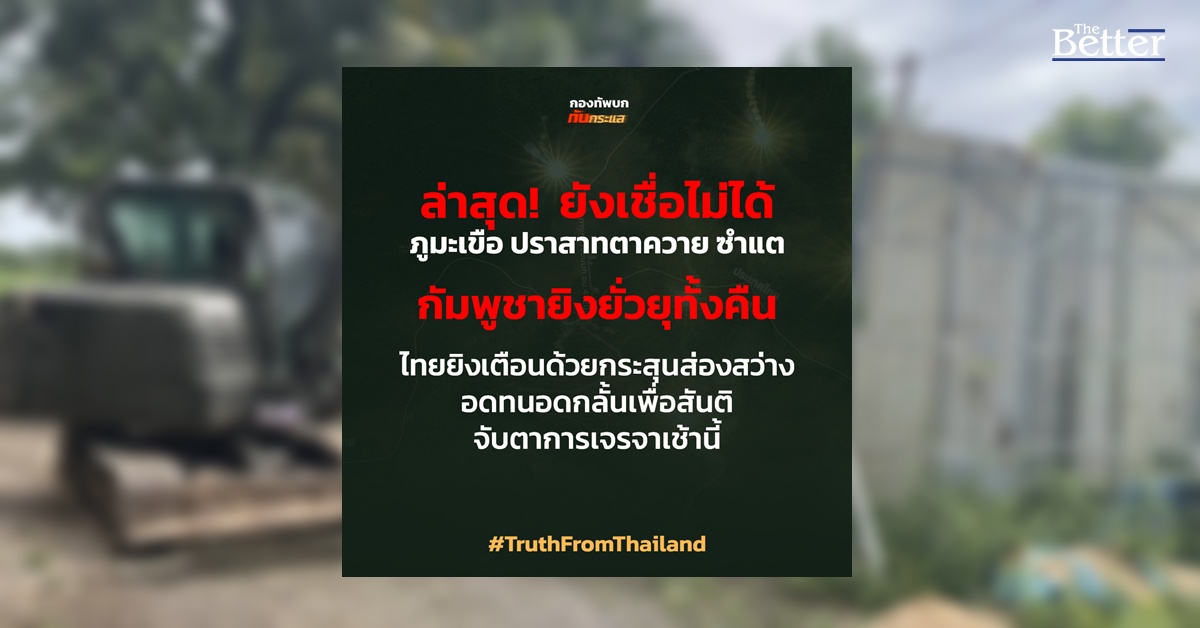 เพจกองทัพบก ทันกระแส เผย ยังเชื่อไม่ได้!! ภูมะเขือ ปราสาทตาควาย ซำแต กัมพูชายิงยั่วยุทั้งคืน ไทยยิงเตือนด้วยกระสุนส่องสว่าง จับตาการเจรจาเช้านี้