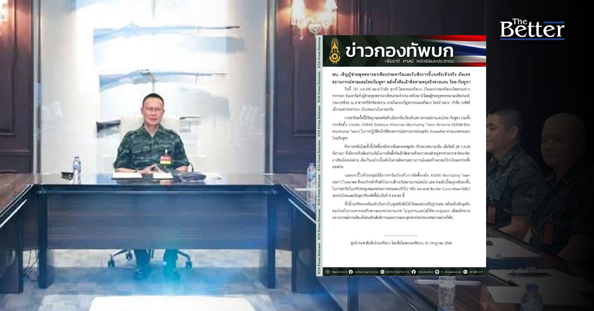 ทบ. เชิญผู้ช่วยทูตทหารอาเซียนร่วมหารือและรับฟังการชี้แจงข้อเท็จจริง อัพเดทสถานการณ์ชายแดนไทยกัมพูชา หลังตั้งทีมเฝ้าติดตามหยุดยิงชายแดน ไทย-กัมพูชา