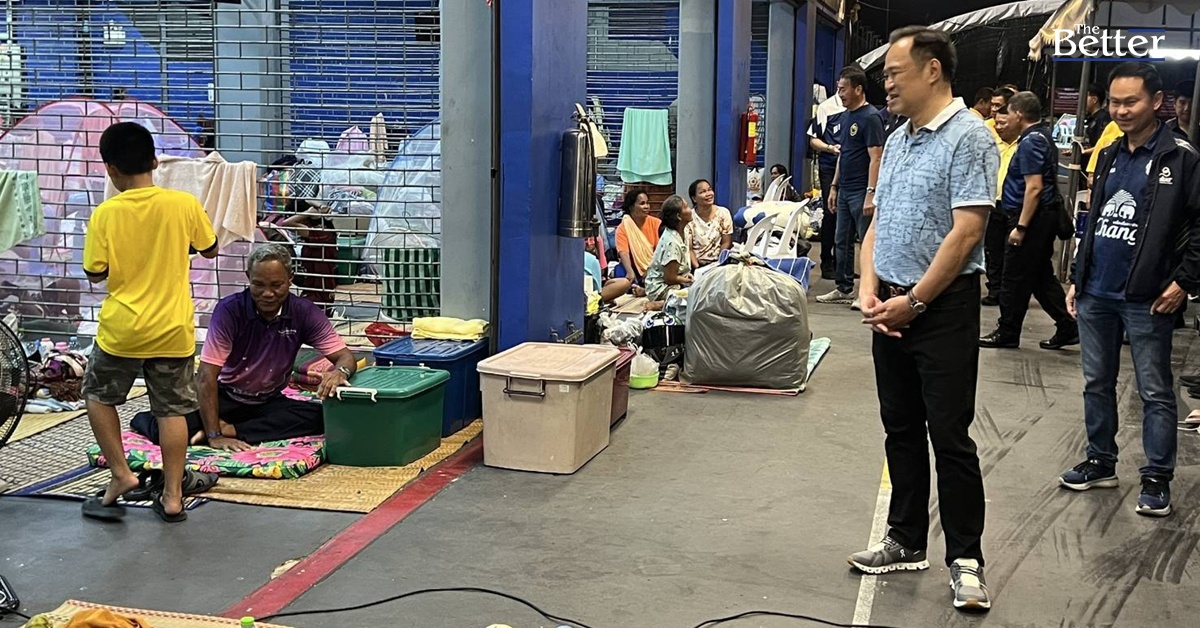 ภายในศูนย์พักพิง นายอนุทินได้พูดคุยสอบถามสภาพความเป็นอยู่ของผู้ประสบภัย พร้อมรับฟังปัญหาและข้อเสนอแนะเพื่อเร่งประสานหน่วยงานที่เกี่ยวข้องให้ความช่วยเหลืออย่างทันท่วงที