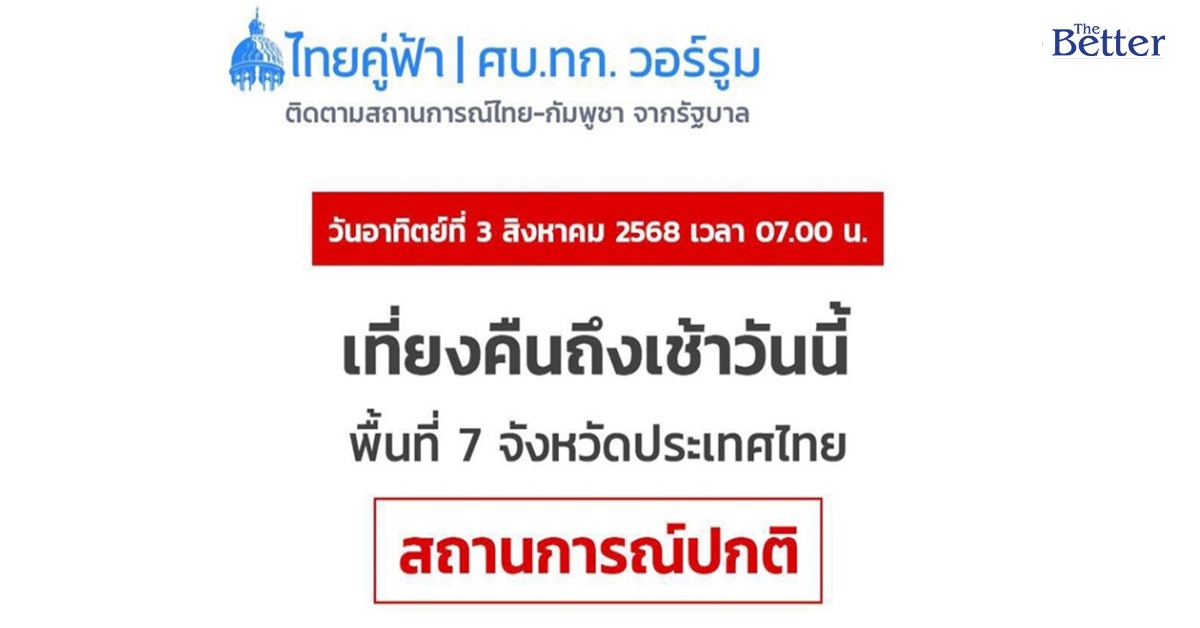 เวลา 07.00 น.วันที่ 3 ส.ค. 2568 นายจิรายุ ห่วงทรัพย์ โฆษกประจำสำนักนายกรัฐมนตรี กรรมการศูนย์เฉพาะกิจบริหารสถานการณ์ชายแดนไทย–กัมพูชา (ศบ.ทก.) ได้รับรายงานถึงสถานการณ์บริเวณชายแดนไทย-กัมพูชาว่า ไม่มีรายงานเหตุการณ์รุนแรงใดๆเกิดขึ้นตามแนวชายแดนไทย-กัมพูชา ในทุกพื้นที่ 7 จังหวัดชายแดน